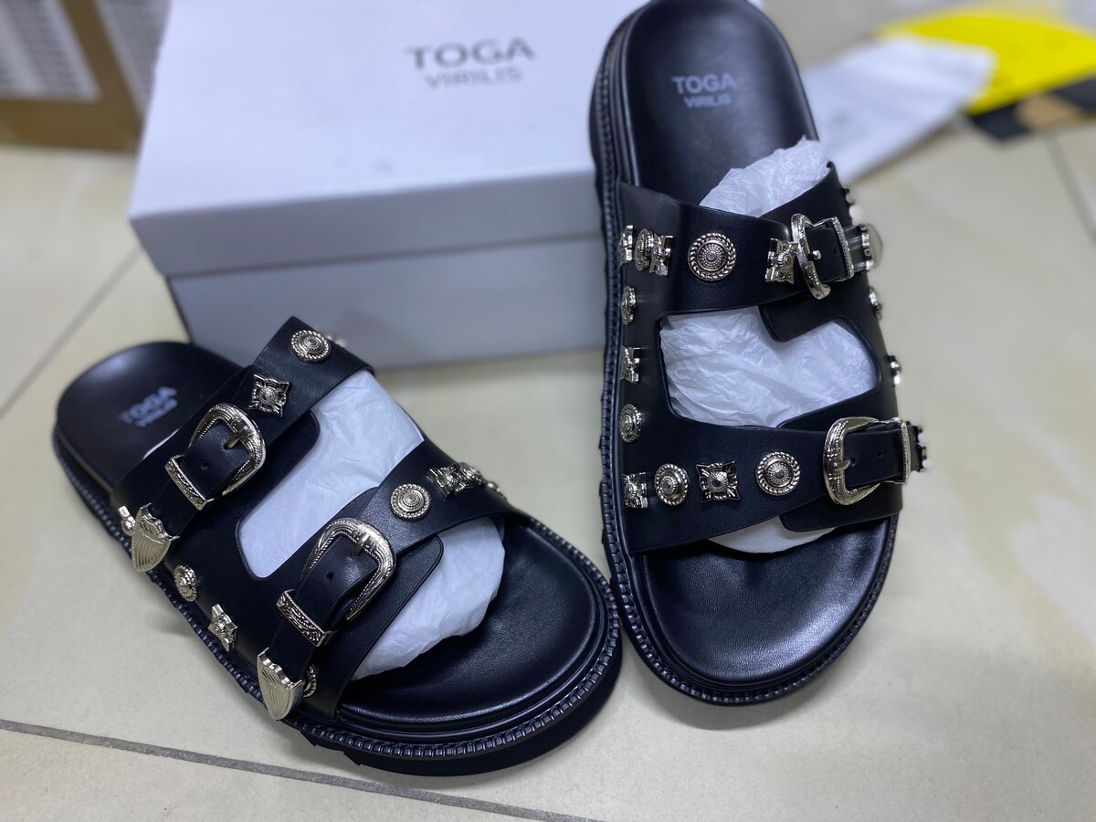 Découvrez le style unique des sandales à boucles Toga, parfaites pour l'été. Confortables et ornées de détails métalliques, elles ajoutent une touche sophistiquée à votre tenue. Idéales pour un look décontracté ou chic en toute saison.