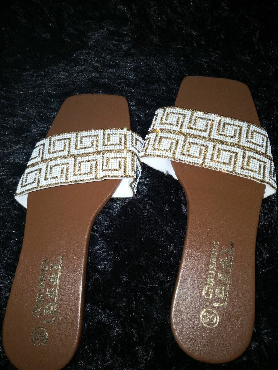 Ces sandales élégantes venant du Sénégal présentent un design grec embellissant une large bande ornée de perles fines. Idéales pour une promenade estivale ou un look chic et décontracté à la plage. Profitez du confort et du style unique à chaque pas.