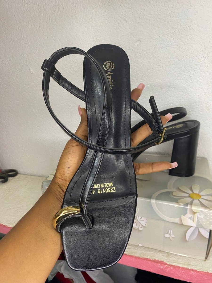 Élevez votre style avec ces élégantes sandales à talons en cuir noir. Dotées de fines lanières et d'une boucle dorée, elles sont parfaites pour compléter vos tenues de soirée ou vos looks quotidiens chic. Le talon carré assure confort et stabilité, faisant de ces sandales un choix parfait pour toutes les occasions.