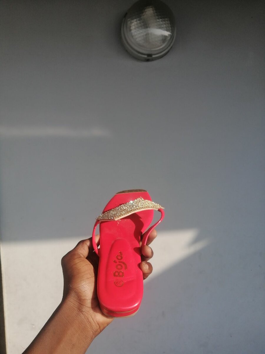 Élégantes sandales roses avec un talon bas et une bride ornée de strass, parfaites pour une touche de glamour à vos tenues d'été.