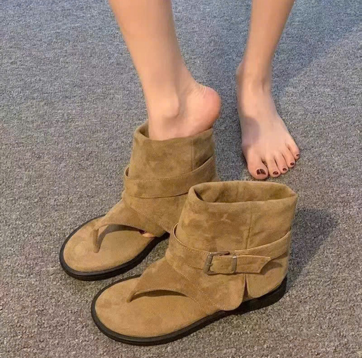 Découvrez ces sandales bottines pour femme, alliant confort et style. Conçues en suède, elles sont parfaites pour les saisons printanières et estivales, offrant une touche unique à votre look décontracté. Idéales pour des promenades en ville ou des sorties entre amis.