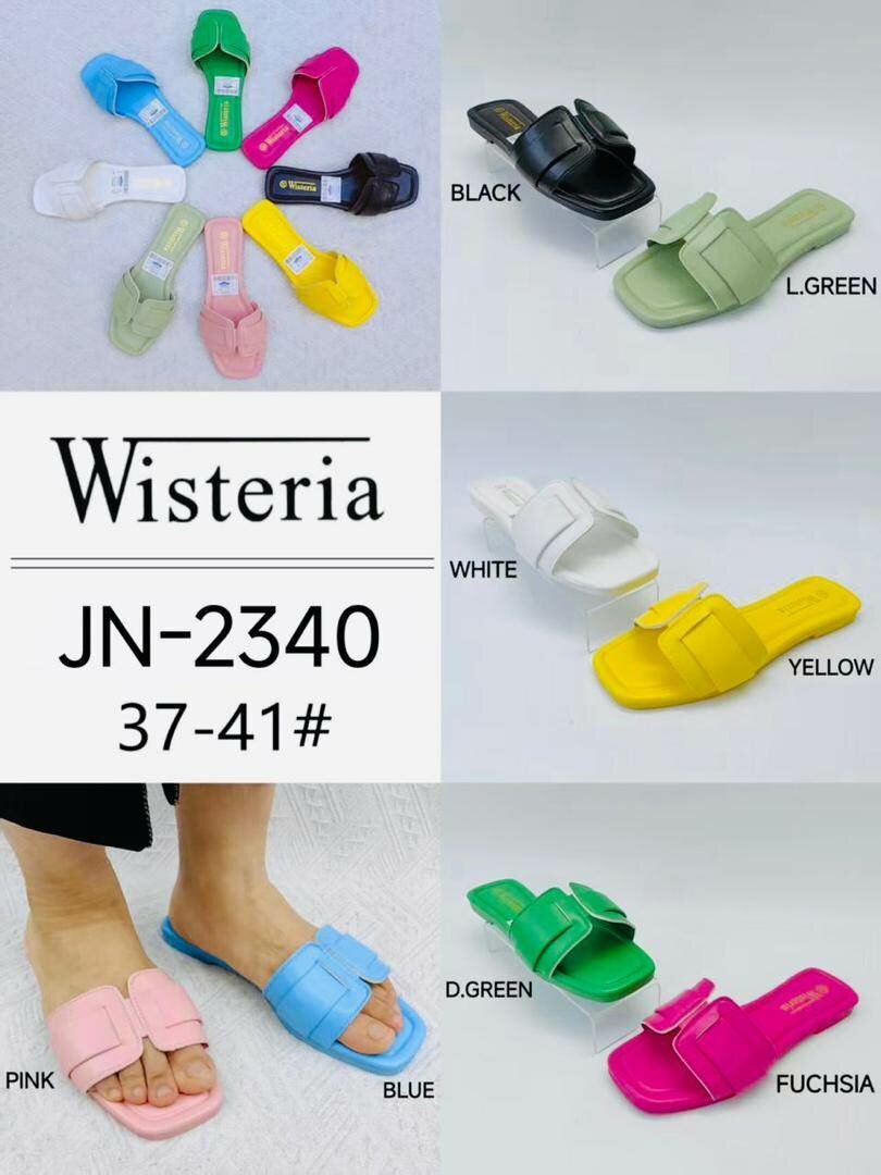 Découvrez les sandales Wisteria JN-2340, disponibles en plusieurs couleurs vives. Confortables et stylées, elles sont parfaites pour l'été. Idéales pour les promenades ou les journées à la plage.