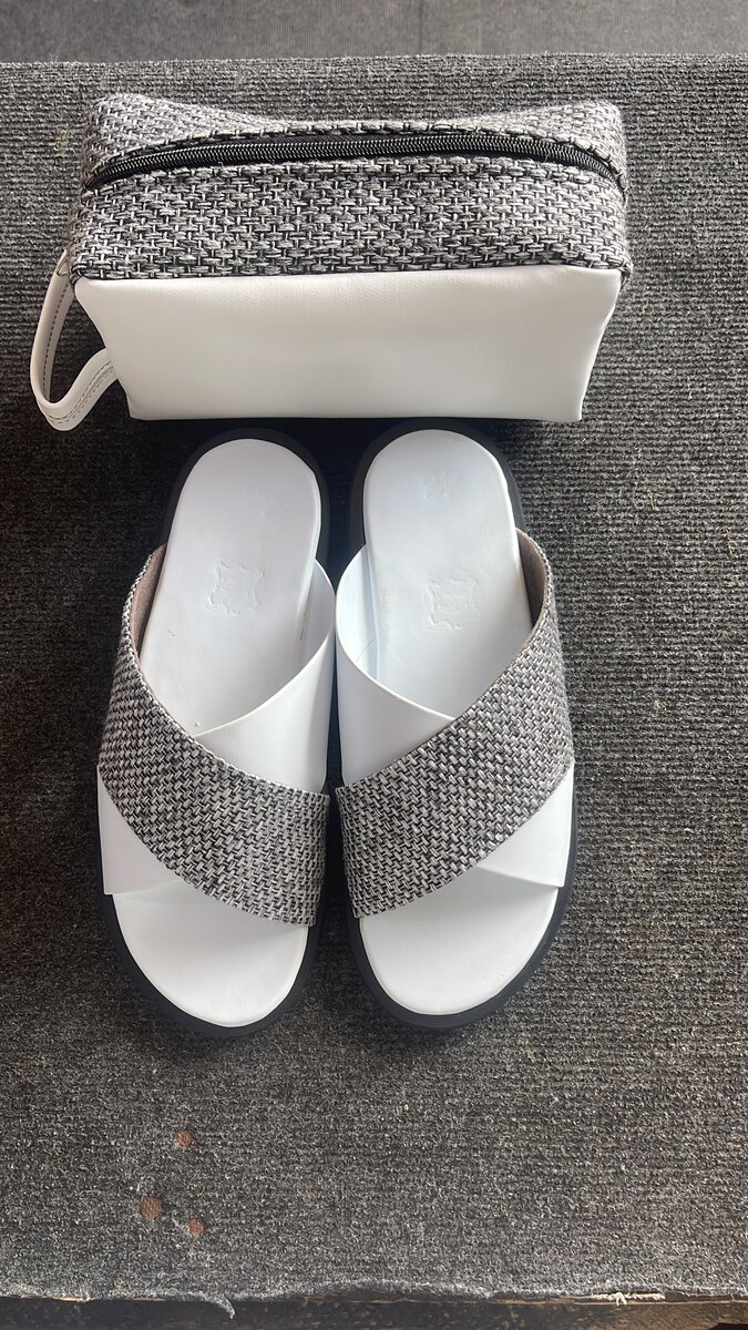 Découvrez nos sandales croisées en cuir et tissu, parfaites pour l'été. Confortables et stylées, elles sont idéales pour vos sorties en ville ou à la plage. Disponibles avec une pochette pratique assortie. Un choix chic pour chaque occasion!