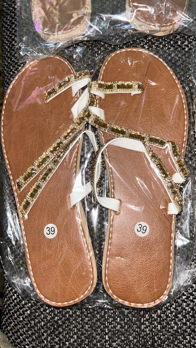 Découvrez ces sandales dorées élégantes parfaites pour l'été. Fabriquées avec soin, elles offrent un confort exceptionnel grâce à leur design léger et aéré. Idéales pour les sorties décontractées ou les soirées estivales, elles ajouteront une touche chic à votre tenue. Disponibles en taille 39.