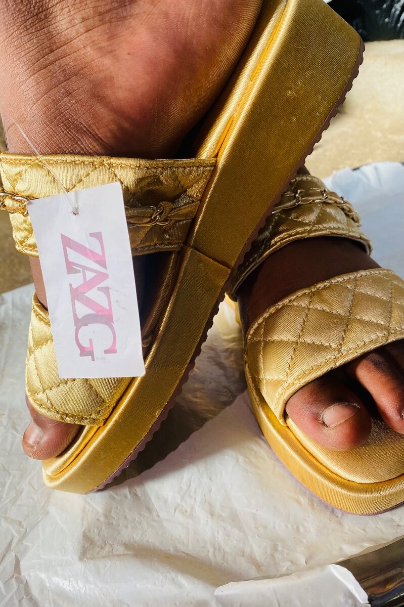 Découvrez ces sandales dorées élégantes, parfaites pour des occasions spéciales ou une sortie décontractée. Avec une finition matelassée et une chaîne dorée, elles ajoutent une touche de luxe à votre tenue. Confortables et stylées, elles sont idéales pour un usage quotidien ou pour habiller vos soirées.