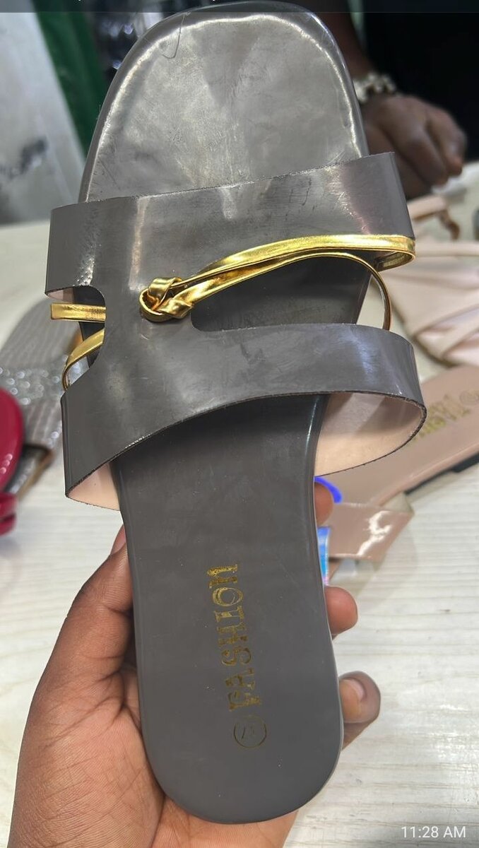 Ces sandales grises avec bride dorée sont idéales pour un look chic cet été. Confortables et stylées, elles s'accordent parfaitement avec une tenue décontractée ou habillée. Faites-en votre choix incontournable pour les journées ensoleillées.