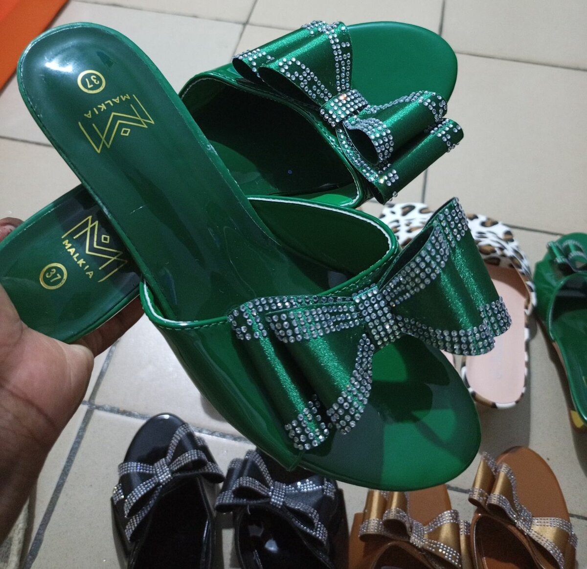 Découvrez ces sandales élégantes et confortables, ornées d'un magnifique nœud en strass. Parfaites pour rehausser votre tenue estivale, elles apportent une touche de glamour à chaque pas. Idéales pour les soirées, mariages ou tenues décontractées.