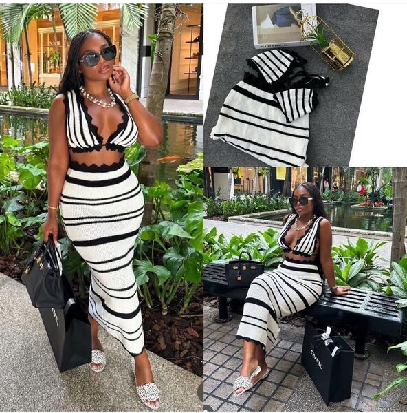Robe moulante à rayures chic