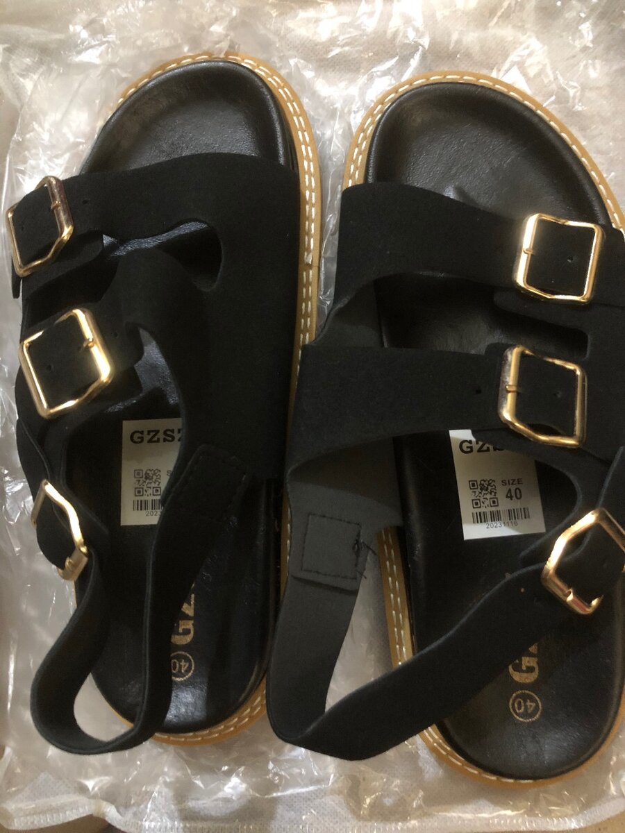 Découvrez le confort et le style avec ces sandales noires élégantes. Dotées de trois boucles dorées, elles sont parfaites pour une tenue décontractée ou chic. Idéales pour l'été, offrant un ajustement personnalisé et un confort optimal.