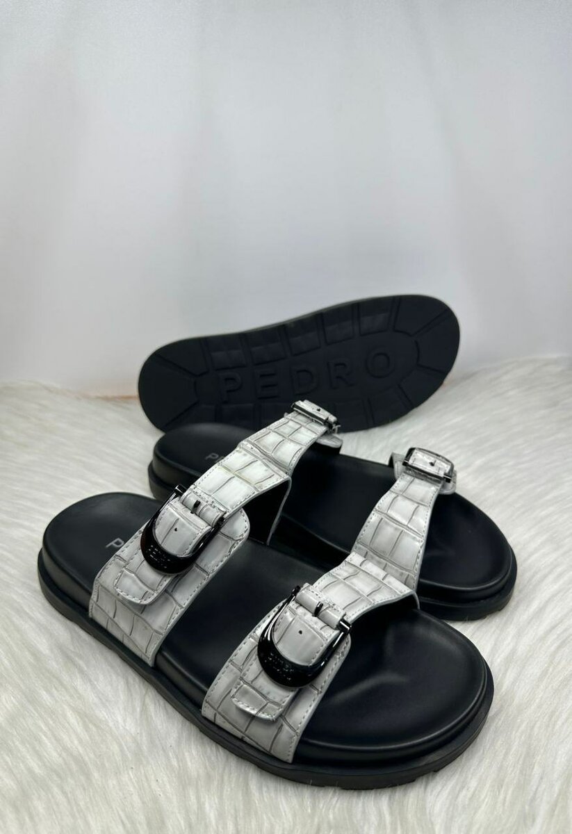 Optez pour ces sandales élégantes avec des brides en cuir effet crocodile. Parfaites pour un style chic et décontracté. Idéales pour les sorties estivales et les promenades urbaines.