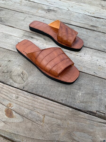Sandales en cuir véritable croco
