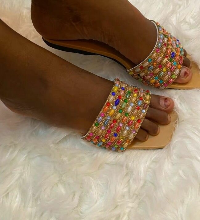 Illuminez votre style avec ces sandales à brides ornées de perles multicolores. Parfaites pour un look estival chic et confortable. Idéales pour la plage ou une sortie décontractée en ville.