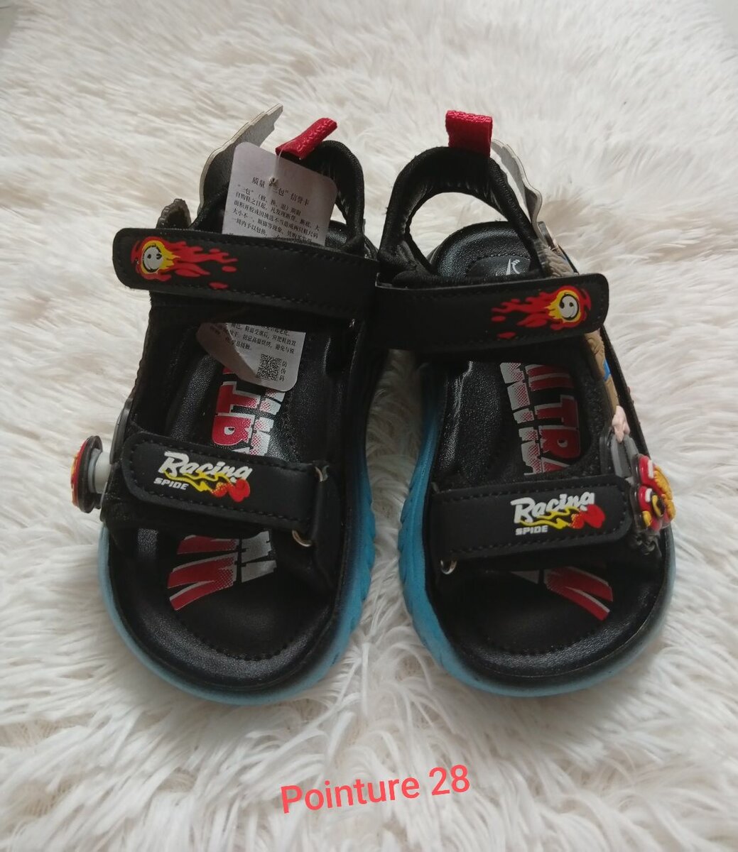 Sandales enfant confortables avec motif voiture. Pointure 28