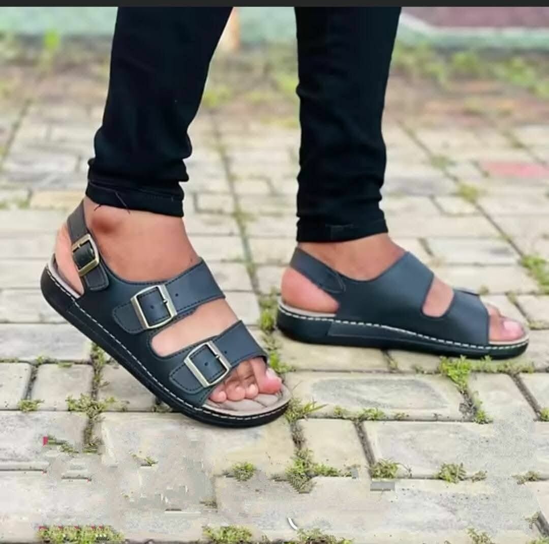 Optez pour ces sandales en cuir noir à boucles pour un confort optimal et un style élégant. Parfaites pour les journées décontractées en été, elles s'ajustent facilement grâce à leurs trois sangles réglables.