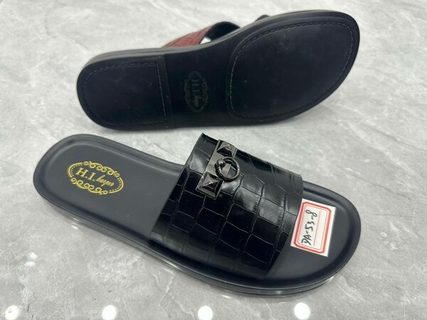 Sandales élégantes pour homme, en cuir noir avec finitions dorées. Confortables et stylées, idéales pour un usage quotidien ou pour des occasions spéciales.