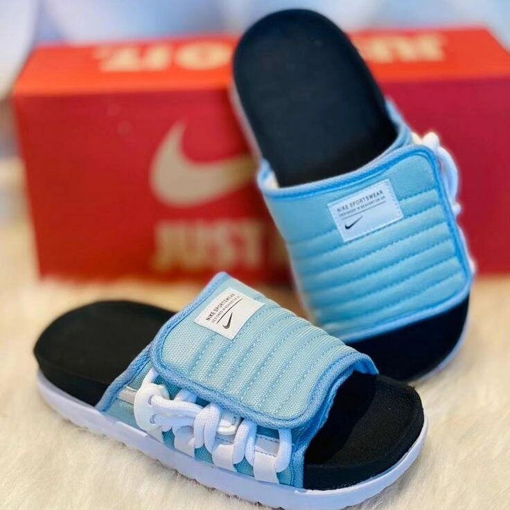 Découvrez les sandales Nike bleu clair, conçues pour le confort et la détente. Avec leur semelle antidérapante et leur design moderne, elles sont idéales pour les activités décontractées ou les sorties à la plage.
