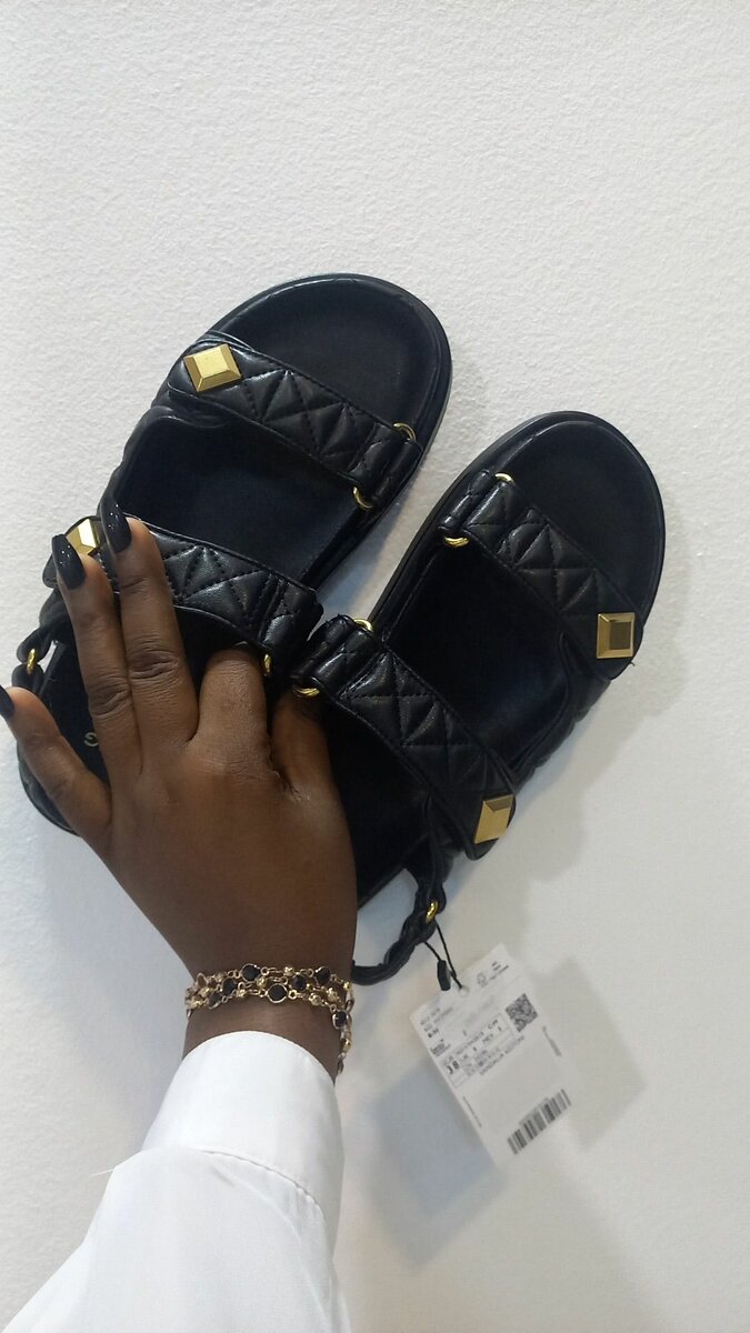 Découvrez ces élégantes sandales noires de marque mango à boucles dorées. Confortables et stylées, elles complètent parfaitement une tenue décontractée ou chic. Idéales pour l'été ou un look urbain.Pointure 39 pleins