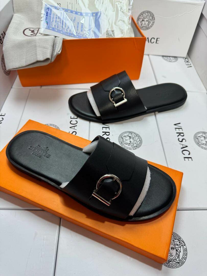 Ces sandales noires Versace allient élégance et confort avec leur design moderne et leur semelle antidérapante. Idéales pour la maison ou la détente, elles offrent un style luxueux avec la signature Versace.
