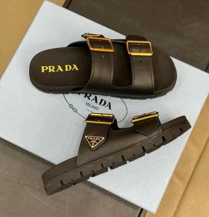 Optez pour l'élégance avec ces sandales noires Prada pour hommes. Dotées de deux boucles ajustables dorées et d'une semelle robuste, elles allient confort et style haut de gamme. Idéales pour les journées décontractées ou les occasions estivales stylées. Faites de ces sandales votre choix de luxe pour l'été.