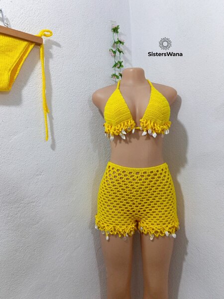 Ensemble crochet bikini et short femme