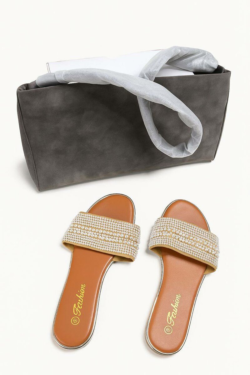 Découvrez la sophistication avec ces sandales perlées, idéales pour les sorties estivales et les occasions spéciales. Confortables et stylées, elles s'accompagnent d'un sac pratique et élégant. Parfaites pour ajouter une touche chic à votre garde-robe.