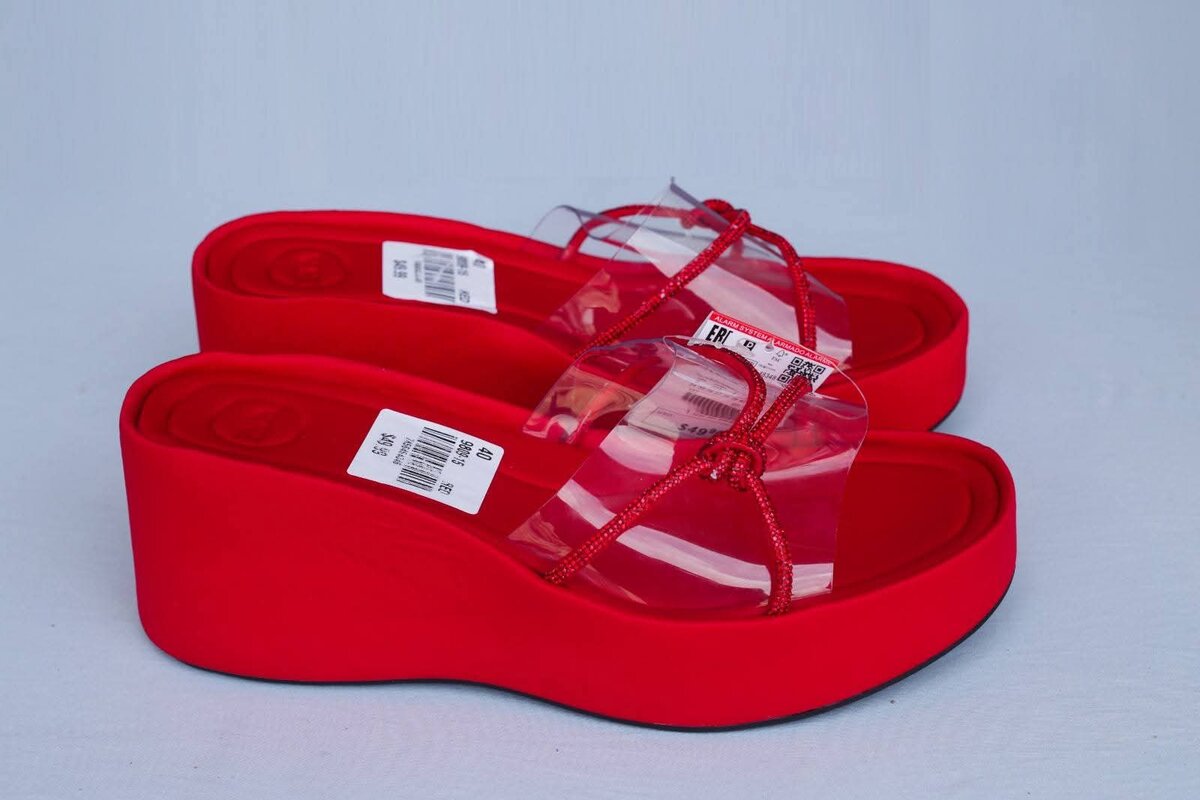 Découvrez le confort et le style avec ces sandales à plateformes rouges vibrantes. Dotées de lanières transparentes élégantes et d'une plateforme solide, elles sont idéales pour une journée estivale ou une soirée décontractée. Parfaites pour ajouter une touche de couleur et de hauteur à votre tenue.