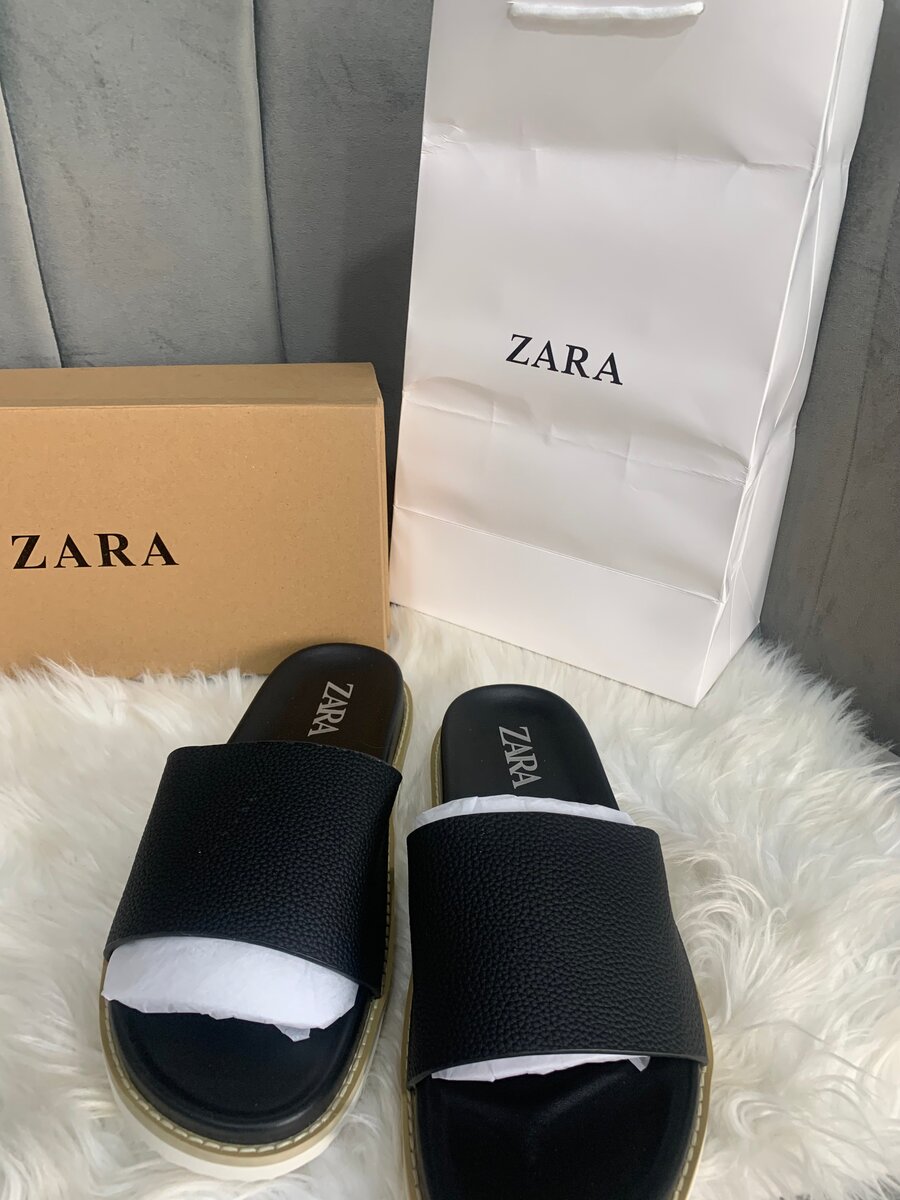 Découvrez les sandales plates ZARA, confortables et élégantes. Disponibles en blanc et noir, elles sont idéales pour une tenue décontractée ou de plage.