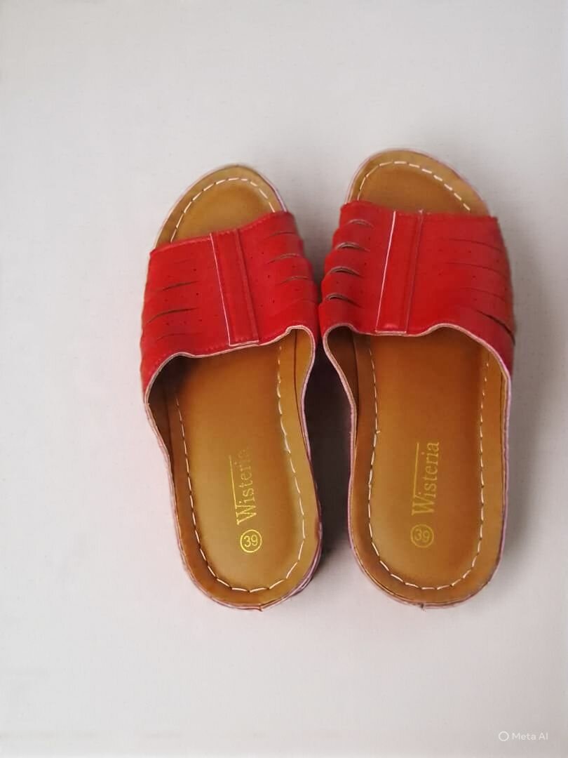 Sandales en cuir rouge vif, parfaites pour l'été. Confortables et stylées, idéales pour une journée à la plage ou une sortie décontractée. Design aéré pour un confort optimal.
