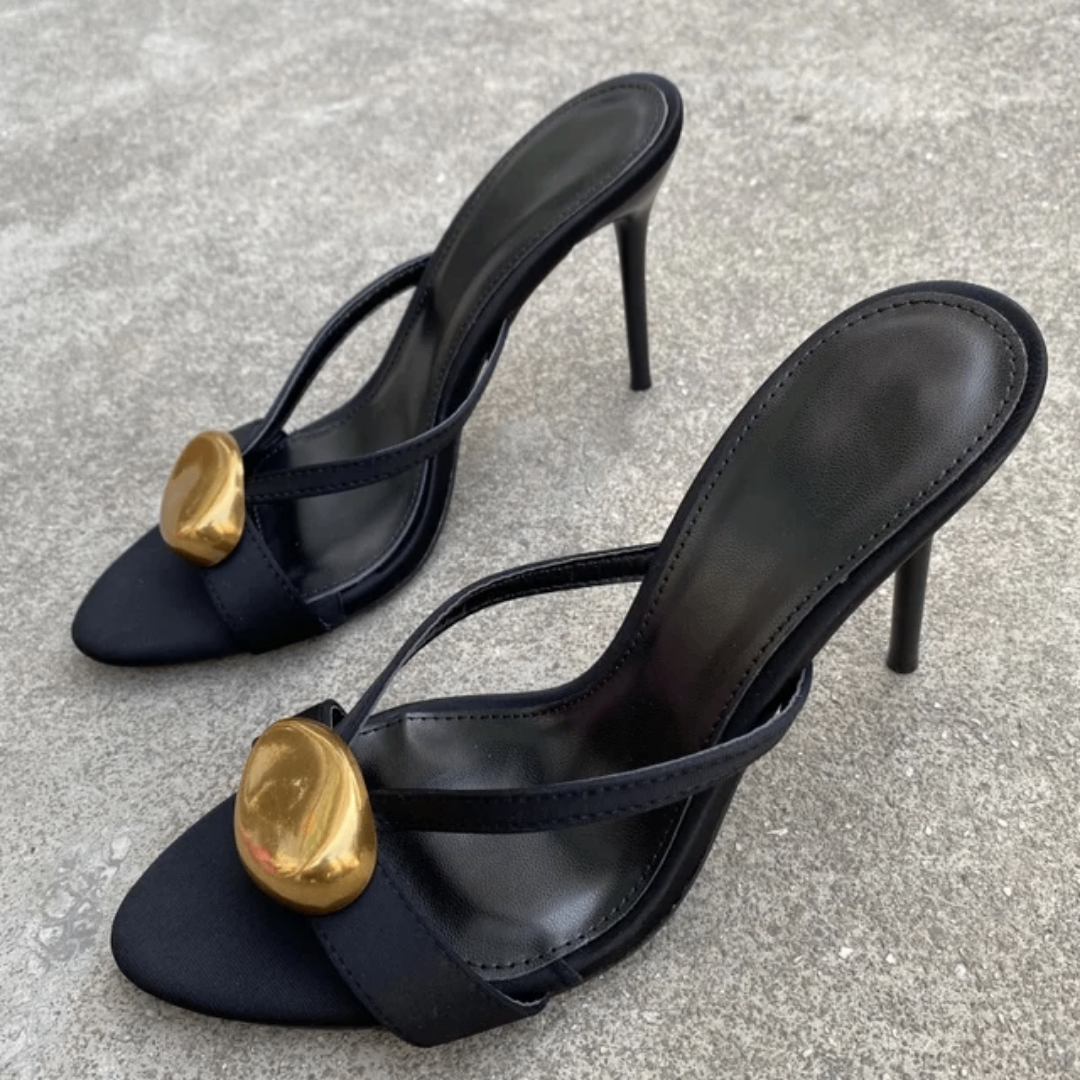 Élevez votre style avec ces sandales à talons élégantes, parfaites pour une soirée ou une occasion spéciale. Avec leur détail doré unique et leur conception confortable, elles sont un choix de mode incontournable. Idéales pour ajouter une touche de sophistication à n'importe quelle tenue.