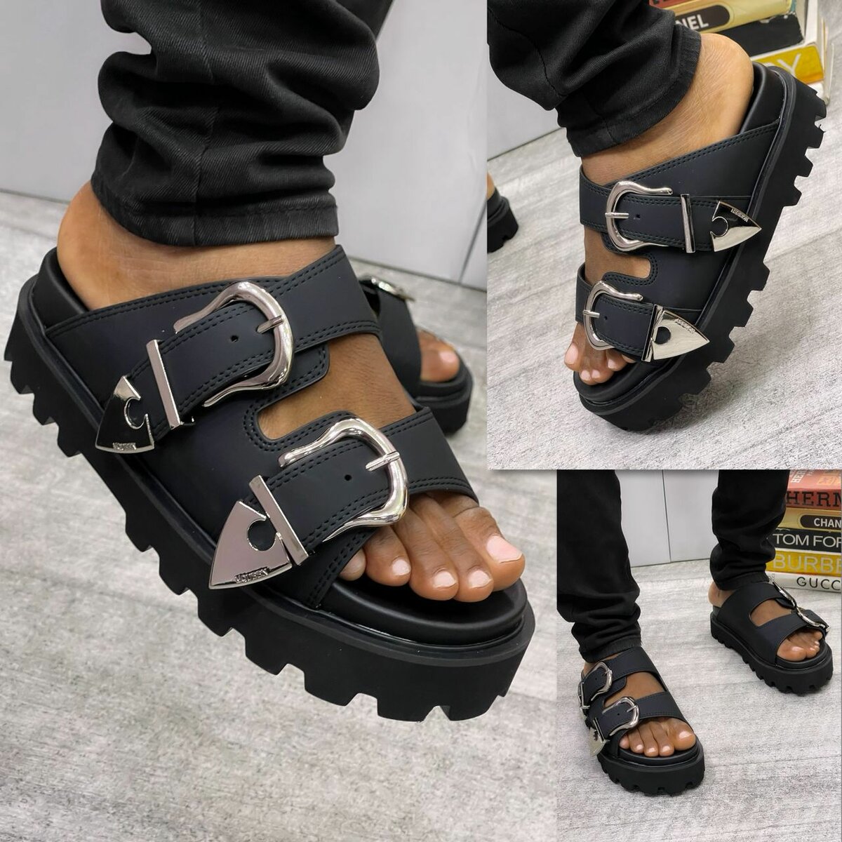 Découvrez les sandales pour hommes parfaites pour l'été. Confortables avec doubles boucles ajustables et semelle antidérapante. Idéales pour un style urbain et moderne.