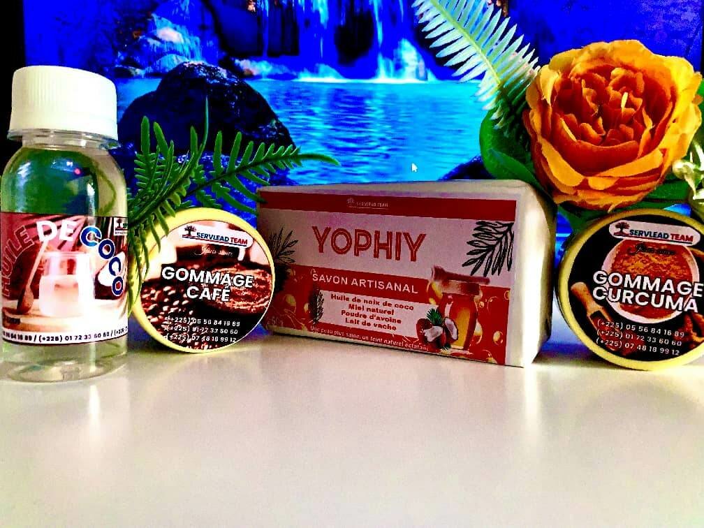 Le kit ( savon, gommage, beurre de karité, huile de coco)