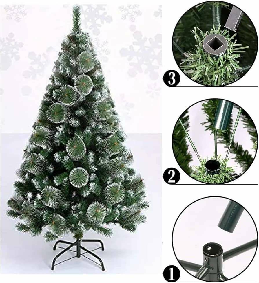 Sapin de Noël artificiel enneigé, idéal pour la décoration de fête. Facile à assembler avec une base robuste en métal. Parfait pour créer une ambiance festive à la maison ou au bureautique 1M20 13500 1M50 15000 1M80 30500 2M10 34500