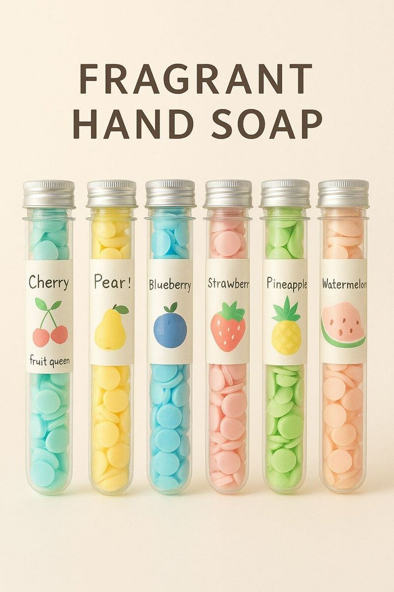 Élevez votre routine avec ce savon à main parfumé aux fruits. Chaque flacon de tubes contient des pastilles de savon aux arômes délicieux : cerise, poire, myrtille, fraise, ananas et pastèque. Idéal pour la maison ou en voyage, il laisse les mains douces et fraîches. Un cadeau parfait pour tous!