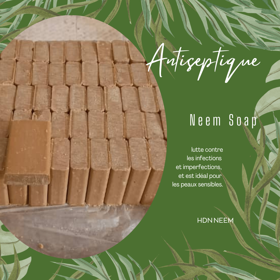 Savon naturel au neem, idéal pour les peaux sensibles. Combat les infections et imperfections pour une peau saine. Parfait pour un usage quotidien.