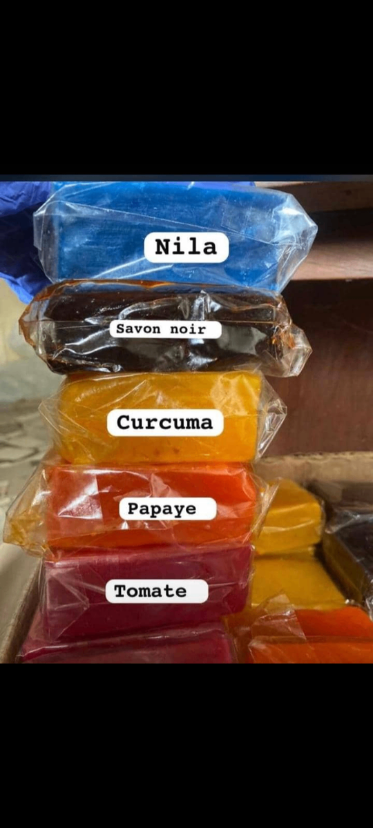 Découvrez notre gamme de savons artisanaux naturels, enrichis d'ingrédients uniques comme le Nila, le Savon noir, Curcuma, Papaye, et Tomate. Chaque savon offre des bienfaits spécifiques pour une peau éclatante et saine. Parfait pour un usage quotidien ou comme cadeau spécial.