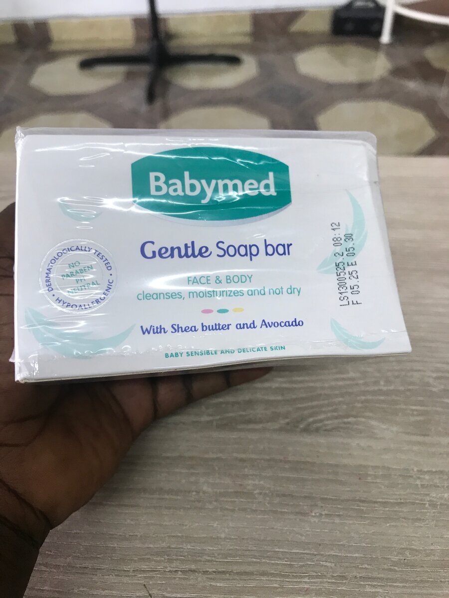 Savon doux Babymed pour visage et corps, enrichi en beurre de karité et avocat. Parfait pour les peaux sensibles. Nettoie, hydrate et protège la peau sans la dessécher. Idéal pour une utilisation quotidienne.
