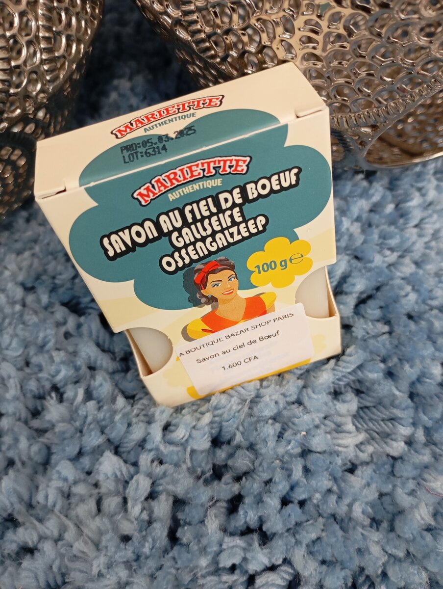 Savon Mariette au fiel de bœuf Un savon 2 en 1 : idéal pour éliminer les taches les plus tenaces sur vos vêtements , tout en prenant soin de votre peau sous la douche . Authentique, efficace et indispensable au quotidien !