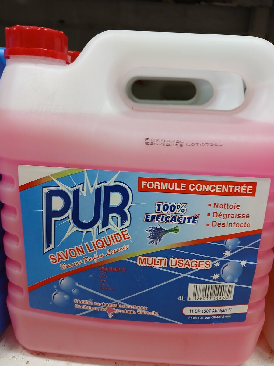 Savon liquide PUR 4L concentré et efficace pour le nettoyage de la maison. Triple action : nettoie, dégraisse et désinfecte. Formule 100% efficace.