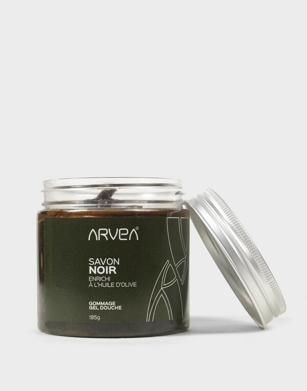 Découvrez le Savon Noir Arvéa. Enrichi à l'huile d'olive, ce savon gommage revitalise votre peau. Idéal pour une douche relaxante et une peau douce. Parfait pour un usage quotidien pour tous types de peau.