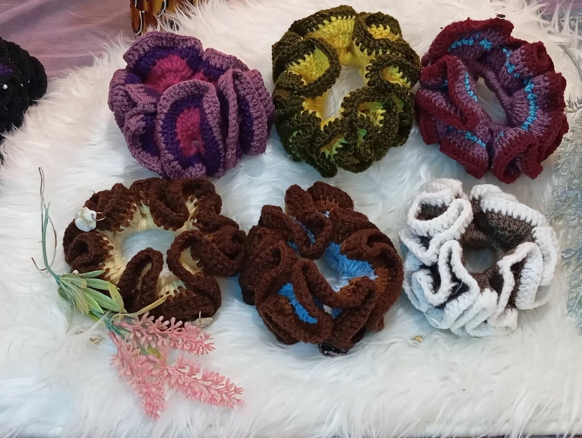 Découvrez nos magnifiques scrunchies en crochet, parfaits pour ajouter une touche de style à votre tenue. Conçus avec des matériaux de haute qualité, ces accessoires capillaires sont doux, confortables et disponibles en plusieurs couleurs. Idéal pour les femmes qui aiment les accessoires uniques et artisanaux.