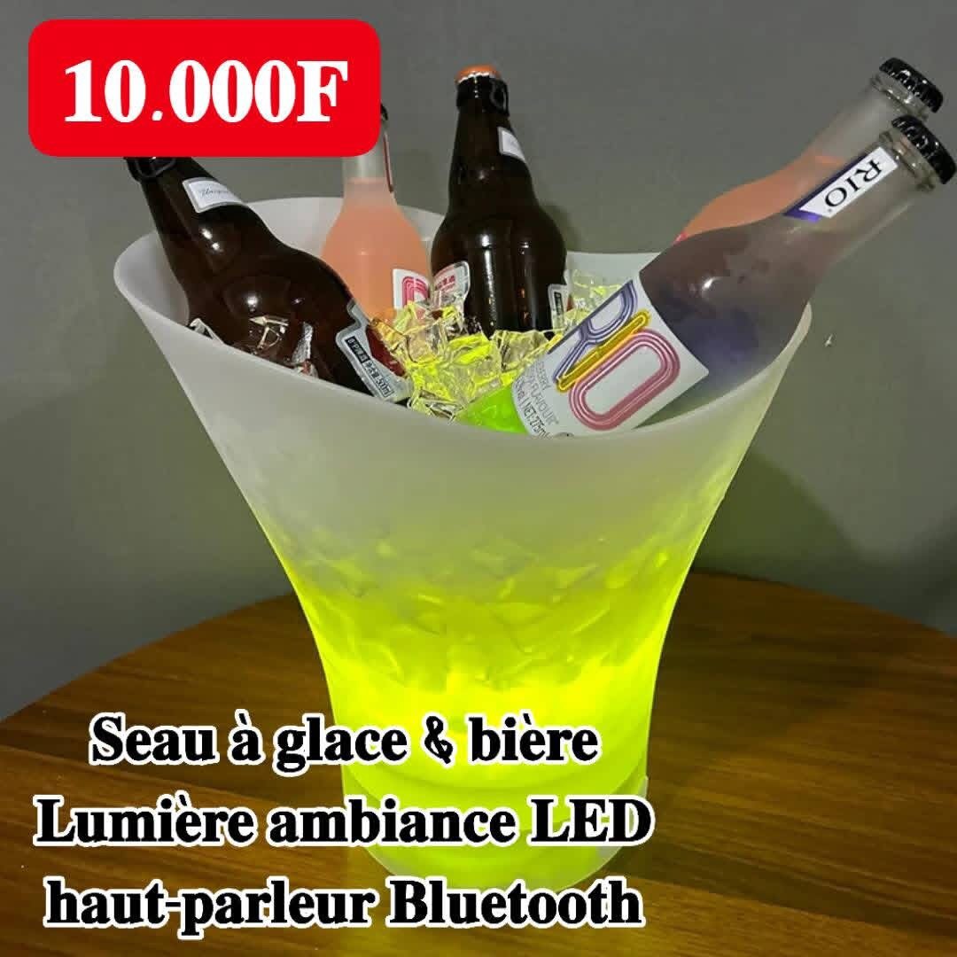 Découvrez notre seau à bière lumineux LED avec haut-parleur Bluetooth. Parfait pour les soirées, il garde vos boissons fraîches tout en illuminant l'ambiance.