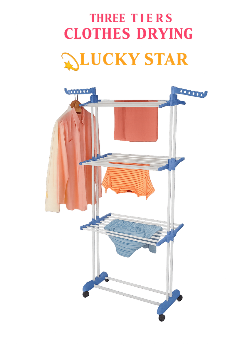 Découvrez ce séchoir à linge robuste à 3 niveaux de Lucky Star. Idéal pour maximiser votre espace de séchage à la maison, il est parfait pour les vêtements de toute la famille. Facile à déplacer grâce à ses roulettes, il offre stabilité et efficacité. Parfait pour une utilisation intérieure.