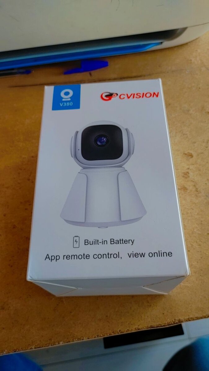The CVISION V380 is a wireless security camera with a built-in battery. It can be controlled remotely via an app and allows you to view live footage online. The camera has a compact design and is easy to install.