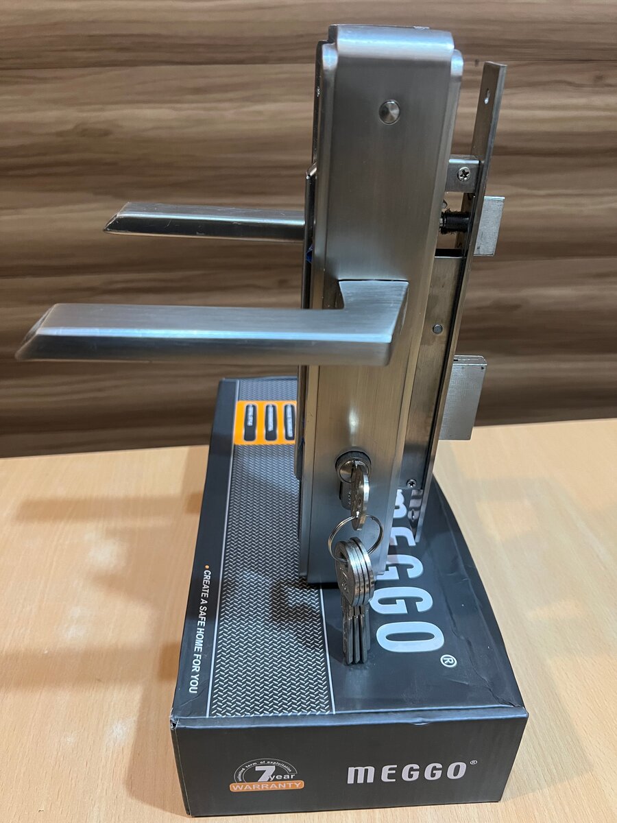 Renforcez la sécurité de votre maison avec la serrure de porte en acier inoxydable Meggo. Solide et durable, elle est équipée de clés de haute sécurité pour une protection optimale. Idéale pour portes d'entrée et bureaux.