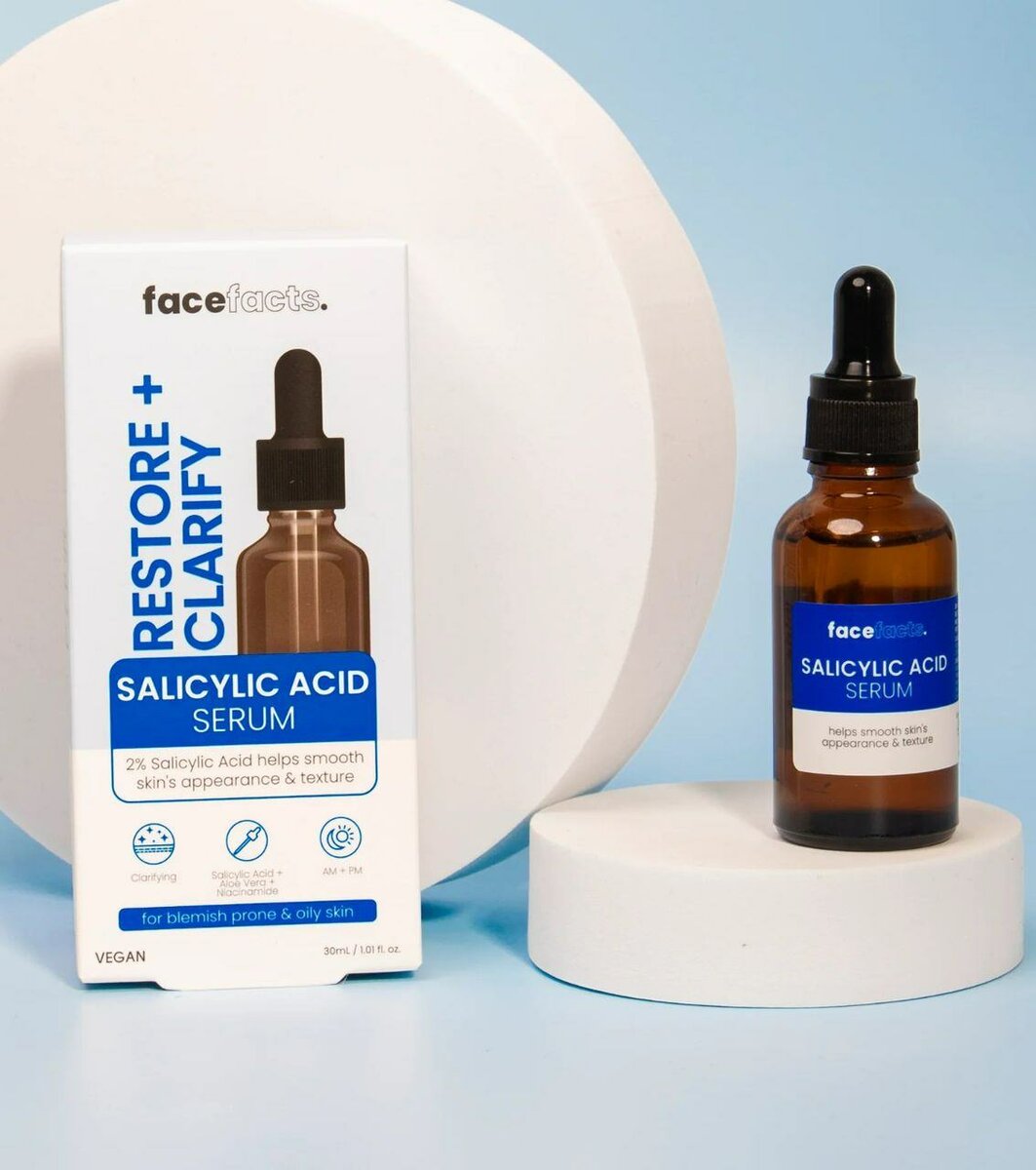 Transformez votre peau avec notre sérum à l'acide salicylique Face Facts. Idéal pour les peaux sujettes aux imperfections, ce sérum vegan améliore la texture et l'apparence. Parfait pour une routine beauté clarifiante et restauratrice.