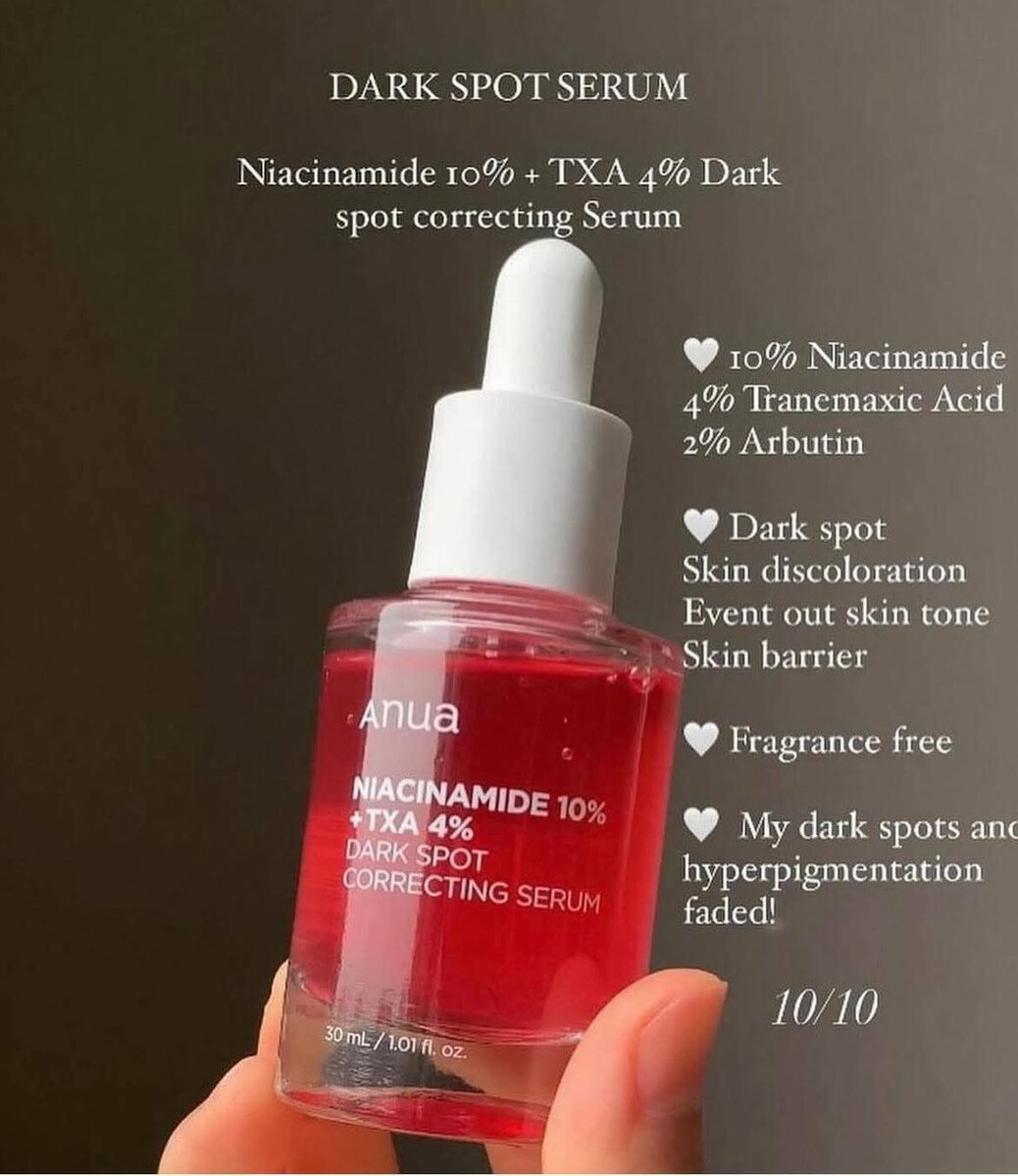 Révélez un teint homogène avec le sérum niacinamide 10% et TXA 4%. Combattez les taches pigmentaires, unifiez votre peau, sans fragrance désagréable. Idéal tous types de peau.