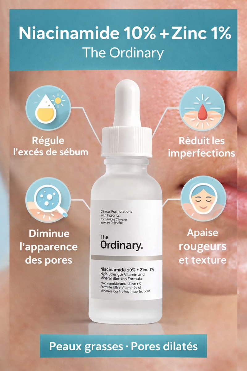 Un sérum puissant enrichi en niacinamide et zinc pour une peau éclatante et équilibrée. Réduit les imperfections, affine le grain de peau et contrôle l'excès de sébum. Idéal pour les peaux à problèmes et sujettes aux rougeurs. Transformez votre routine beauté avec The Ordinary !