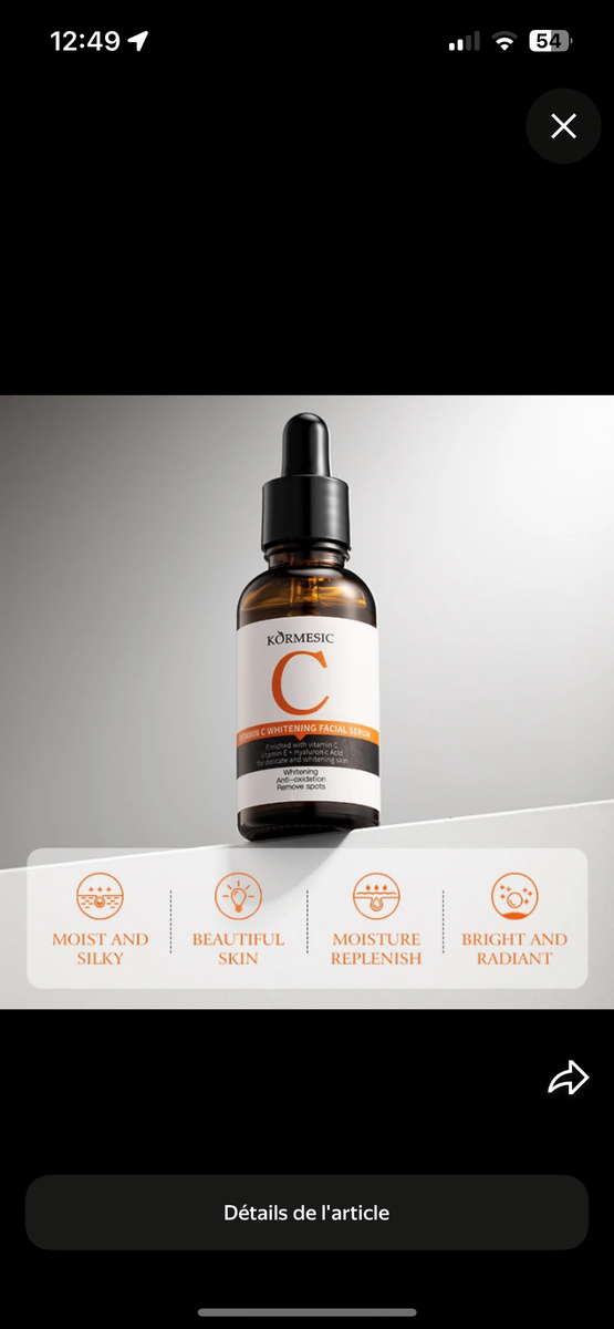 Découvrez notre sérum à la vitamine C pour une peau éclatante et hydratée. Formulé pour renouveler l'éclat de votre peau, il est idéal pour tous les types de peau. Profitez d'une hydratation profonde et d'un teint lumineux chaque jour.