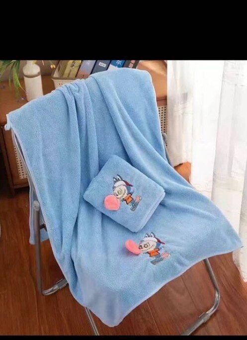 Ensemble couverture et coussin bleus, idéal pour la chambre d'enfant. Doux, confortable et orné d'un motif animal amusant, parfait pour un usage quotidien ou pour offrir.