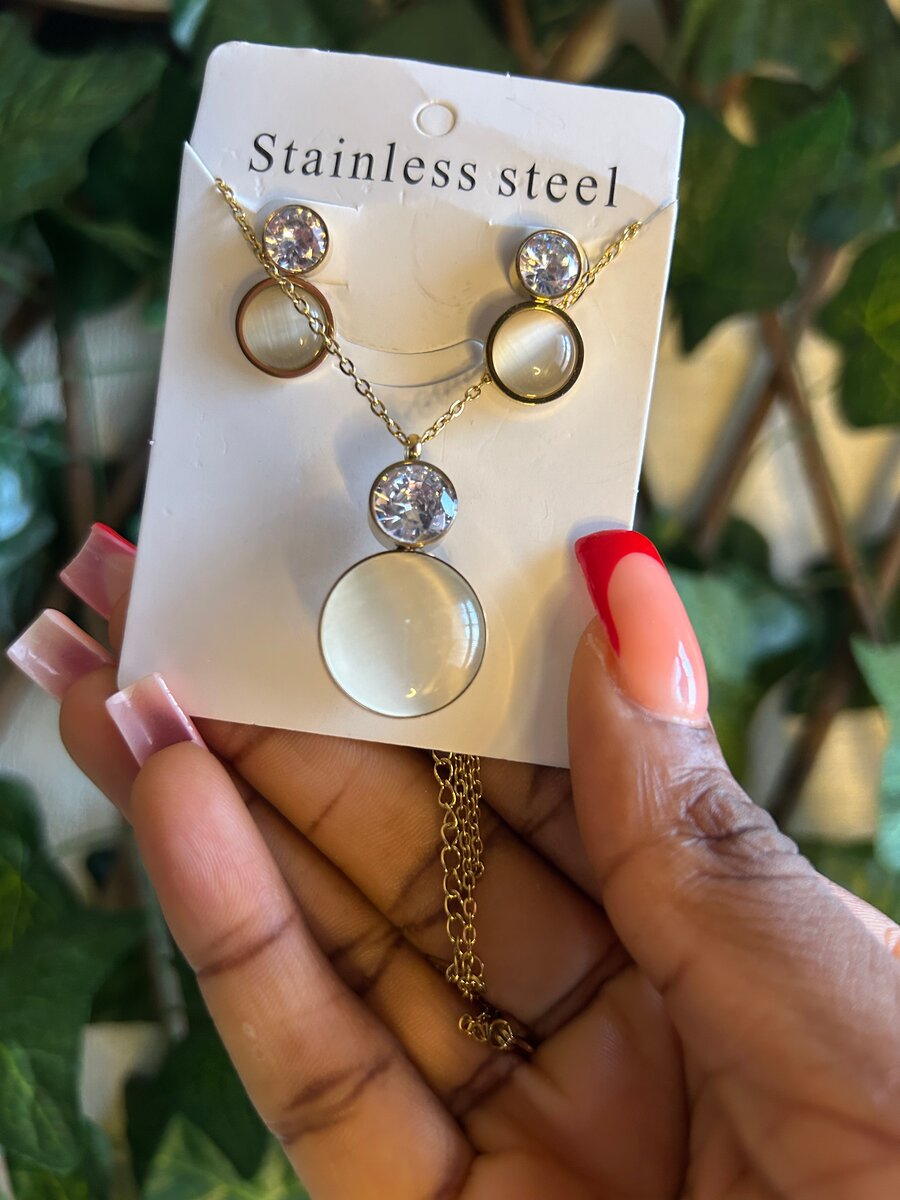 Découvrez cet élégant ensemble de bijoux en acier inoxydable, comprenant un collier et des boucles d'oreilles assorties. Parfait pour ajouter une touche de sophistication à n'importe quelle tenue. Idéal pour un usage quotidien ou des occasions spéciales grâce à sa durabilité et son design intemporel.